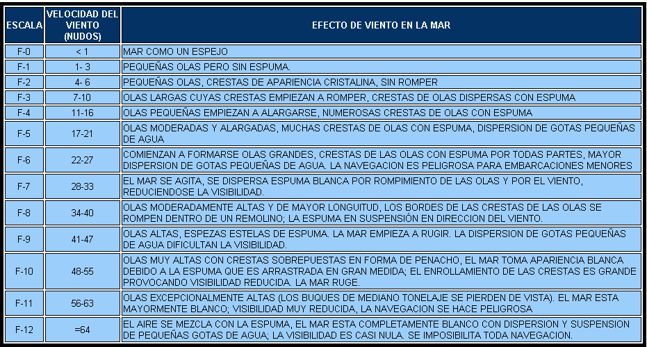 ESCALA BEAUFORT |